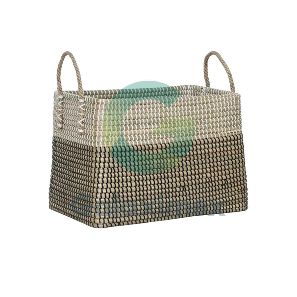Rectangular Two-Tone Woven Storage Basket with Rope Handles